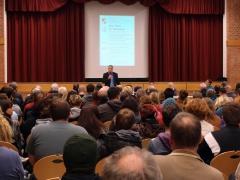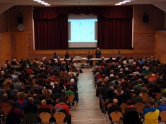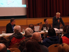 Die Informationsveranstaltung wurde von rund 300 Personen besucht, die vorwiegend aus Scheinfeld und seinen Stadtteilen kamen. Wir waren über die hohe Beteiligung von Demokrat_innen sehr positiv überrascht! Es war somit eine gute Entscheidung, die Veranstaltung kurzerhand vom Bürgersaal in die Wolfgang-Graf-Halle zu verlegen, denn der Bürgersaal (üblicherweise für bis zu ca. 100 Personen) wäre wirklich deutlich zu klein gewesen.
