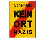 Hier können Sie sich das Schild "Scheinfeld ist kein Ort für Nazis" im A4-Format herunterladen, ausdrucken, verteilen.