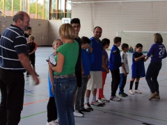 Das Team „gelb“ siegte am Nachmittag im Fußballwettstreit. Alle Akteure erhielten für ihren motivierten und fairen Einsatz eine Tafel „Die Gute Schokolade“ und die teilnehmenden Schulen einen neuen Adidas-Fußball. Der größte Gewinn für alle war jedoch das gemeinsame, harmonische und fröhliche Miteinander in der sonnendurchfluteten Sporthalle in Scheinfeld – ein „Vorbild“ das Schule machen sollte.